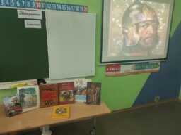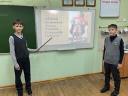 Отдельно хотим рассказать про интересный урок в 4″Г» классе. Его тема звучала глубоко и символично: «Хранители земли русской. Святой великий князь Александр Невский». Ребята не просто слушали, а активно работали: они выполняли интересные интерактивные задания, разгадывали тематические кроссворды и складывали фразы о любви к своей Родине. А еще своими силами оформили настоящую книжную выставку с произведениями о жизни и подвигах великого полководца!