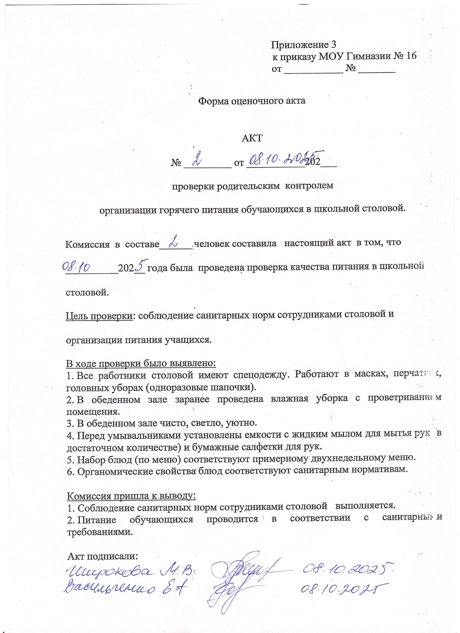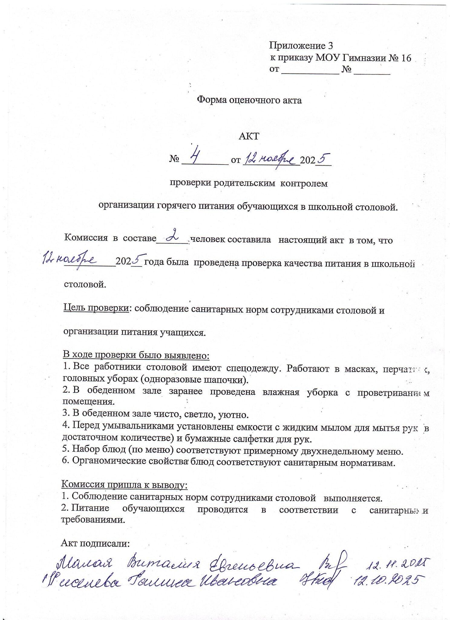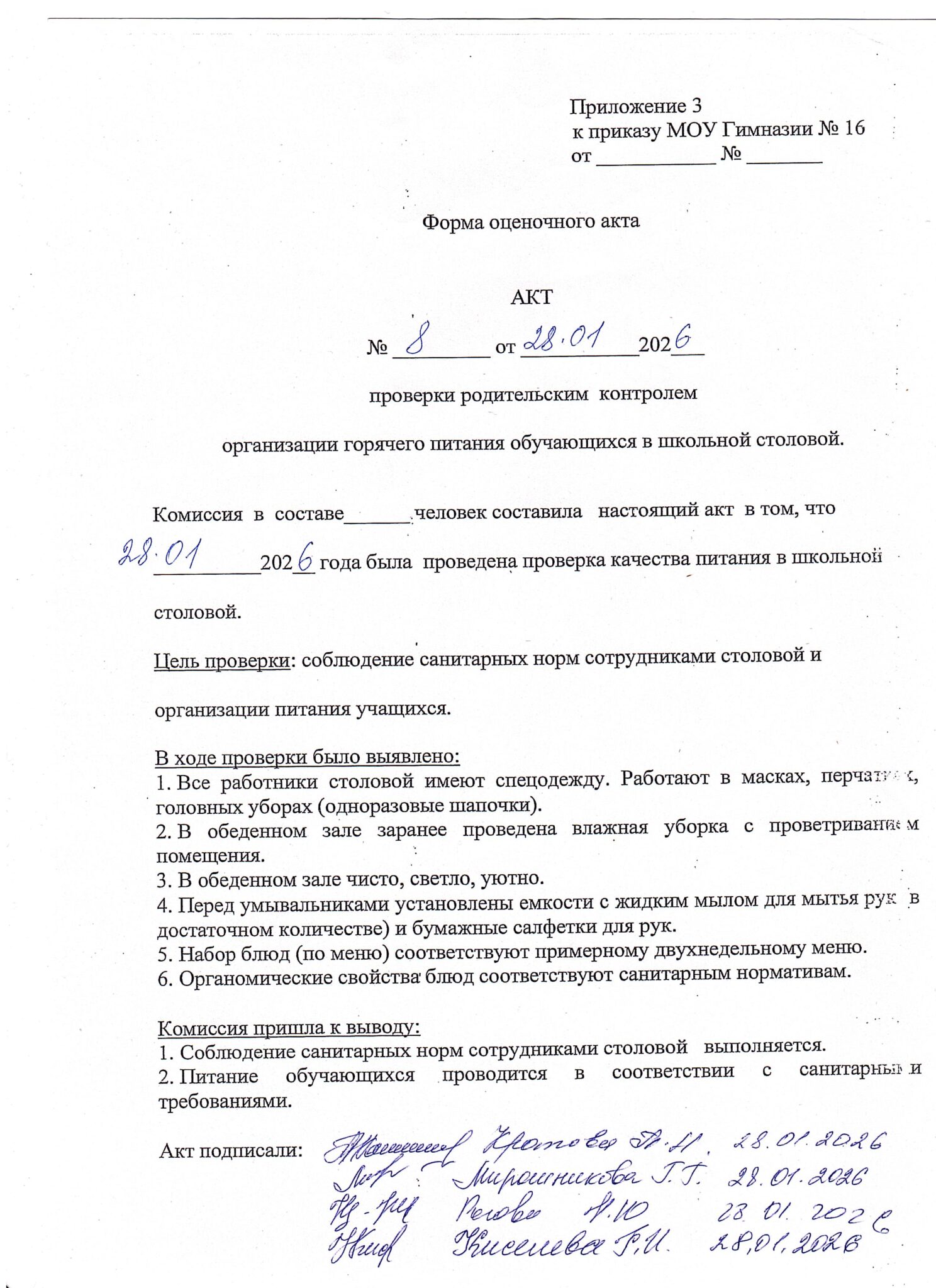 В 2024-2025 учебном году группой родительского контроля Гимназии в школьной столовой систематически проводятся проверки организации горячего питания обучающихся :