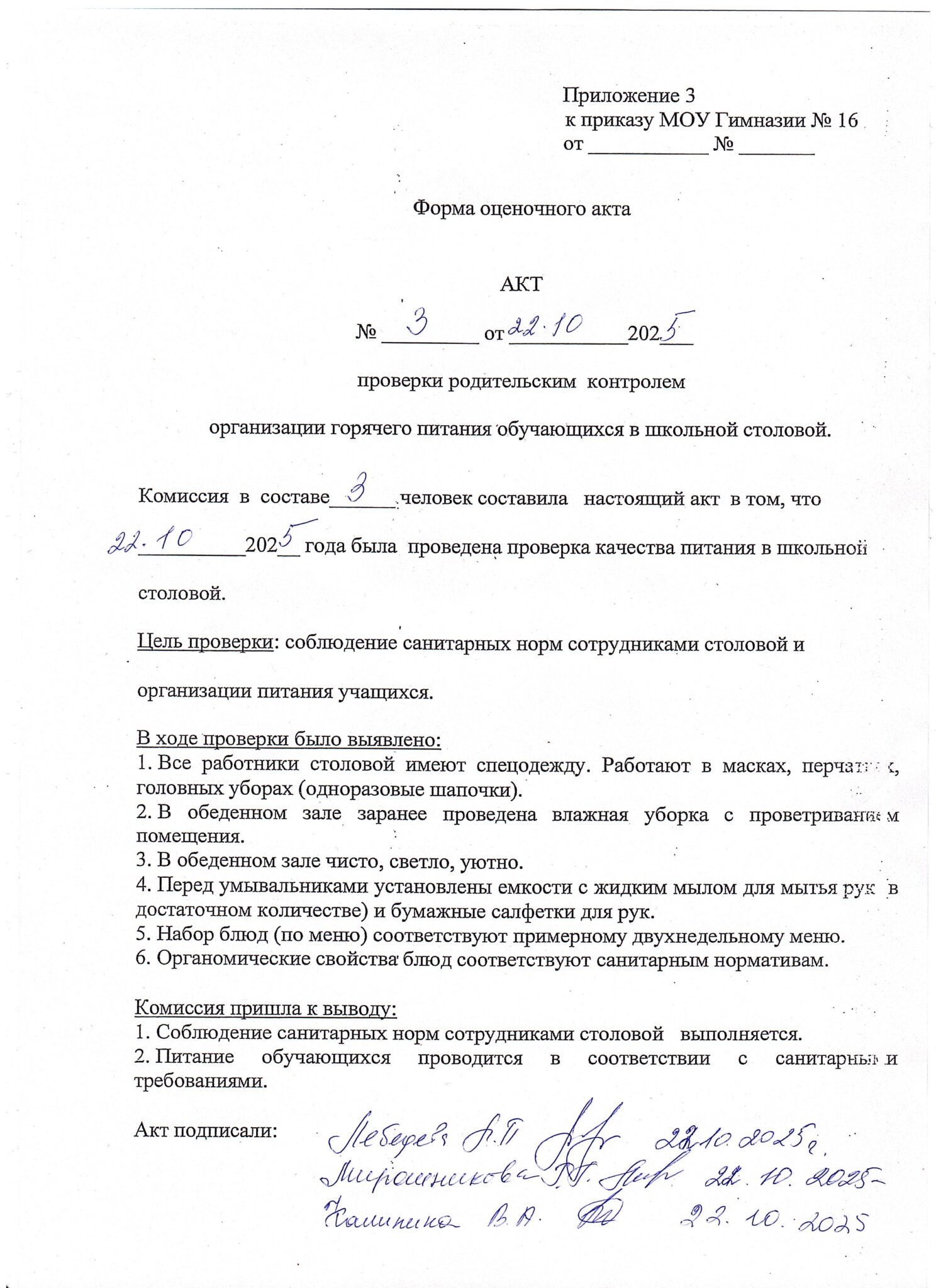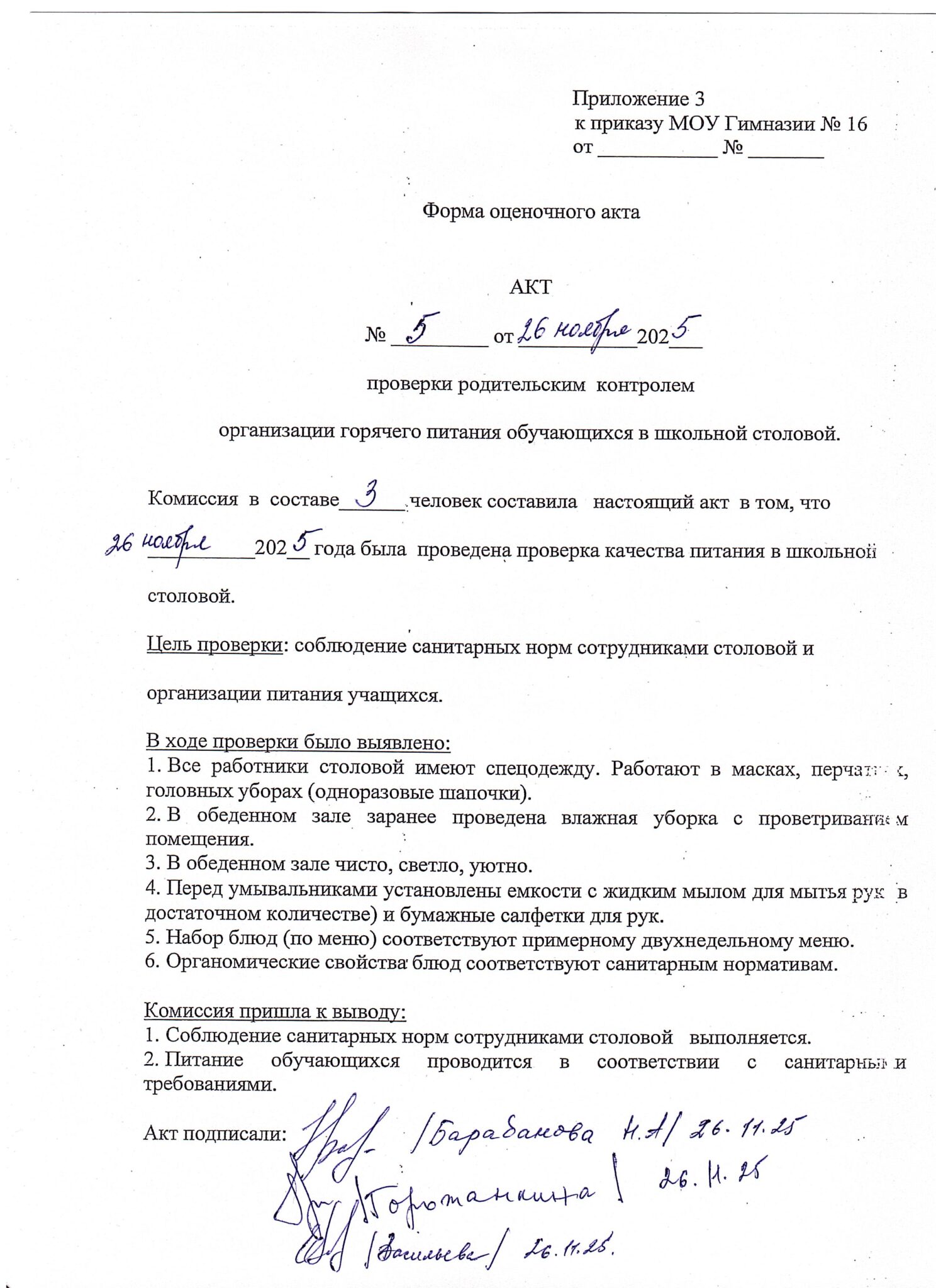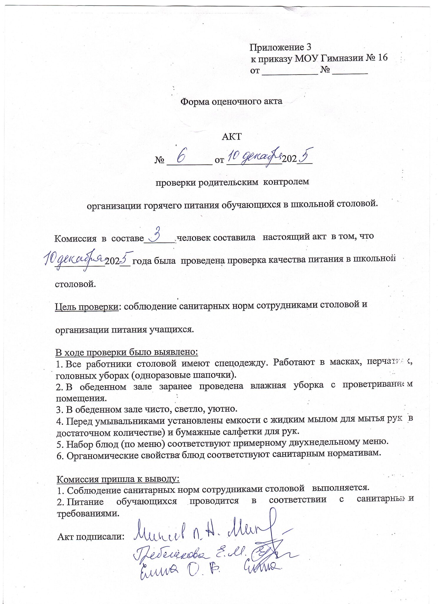 В 2024-2025 учебном году группой родительского контроля Гимназии в школьной столовой систематически проводятся проверки организации горячего питания обучающихся :