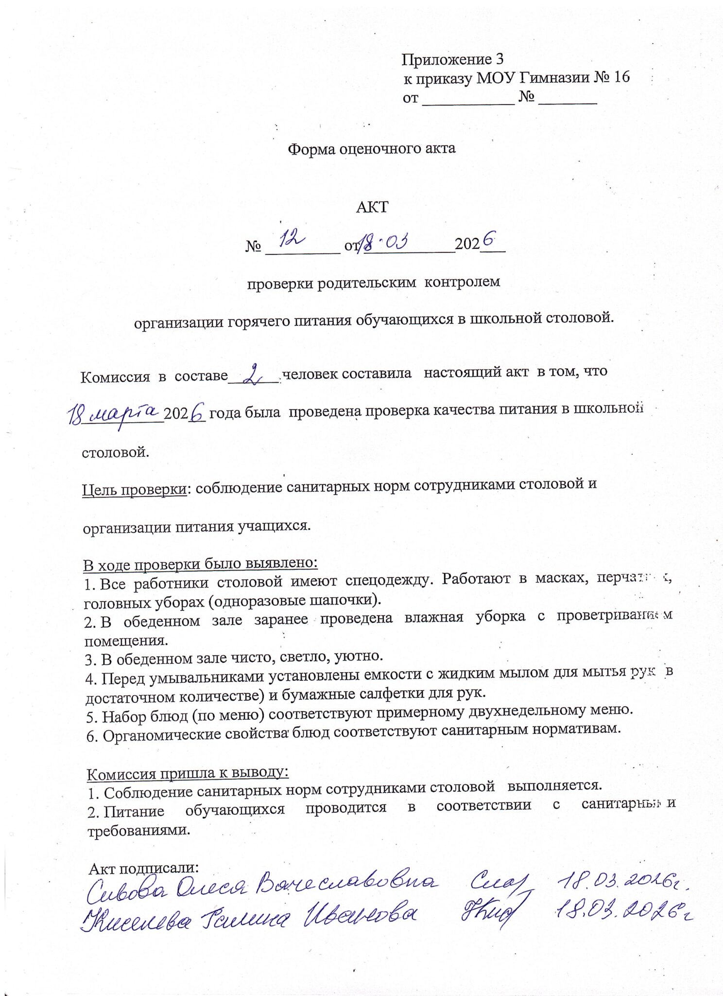 - Акт родительского контроля № 12 18.03.2026