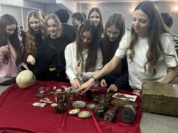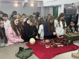 Школьникам выпала уникальная возможность не просто услышать рассказ о героическом прошлом нашей страны, но и своими глазами увидеть артефакты военных лет. Гости привезли с собой передвижной музейный комплекс — коллекцию экспонатов, найденных в ходе поисковых экспедиций на местах сражений.