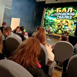 Ученики 9 «Г» класса гимназии №16 вместе с классным руководителем Мовчан А. Е. посетили необычное и очень важное мероприятие — живую встречу участников проекта «Бал на городской свалке» в Волгоградском областном театре кукол!